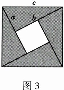 8. 如图 3,在边长为 $c$ 的正方形中,有四个斜边为 $c$,直角边为 $a$、$b$ 的全等直角三角形,你能利用这个图说明勾股定理吗?写出理由.