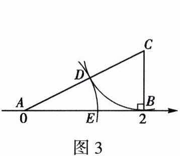 5. 如图3,在数轴上,点A、B表示的数分别为0、2,$BC \perp AB$于点B,且$BC = 1$. 连接AC,在AC上截取$CD = BC$,以点A为圆心、AD的长为半径画弧,交线段AB于点E,则点E表示的实数是(