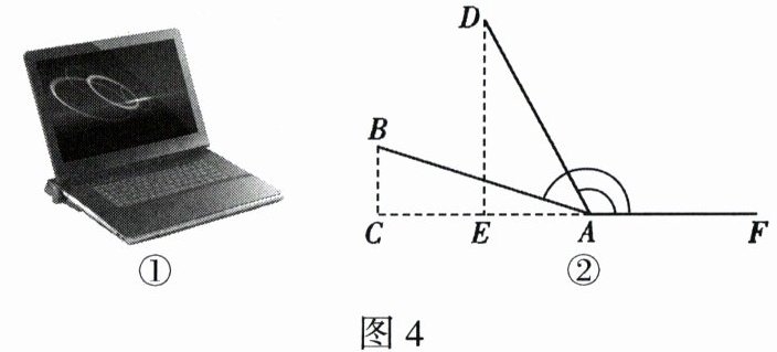 6. 如图4①,某数学兴趣小组开展了笔记本电脑的张角大小的实践探究活动. 如图4②,当张角为$\angle BAF$时,顶部边缘B处离桌面的高度BC为7 cm,此时底部边缘A处与C处之间的距离AC为24 cm. 小组成员调整张角的大小继续探究,最后发现当张角为$\angle DAF$时(D是B的对应点),顶部边缘D处到桌面的距离DE为20 cm,则底部边缘A处与E处之间的距离AE为(