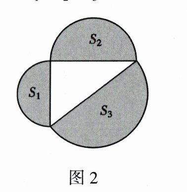4. 如图2,直角三角形三边上的半圆面积从小到大依次记为$S_1$、$S_2$、$S_3$,则$S_1$、$S_2$、$S_3$的关系是(