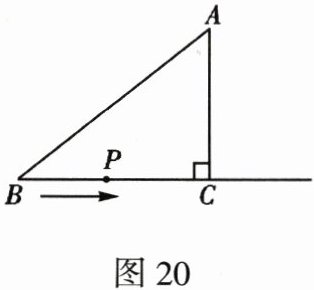 22. (10分)如图20,在$Rt \triangle ABC$中,$\angle ACB = 90^{\circ}$,$AB = 5\ cm$,$AC = 3\ cm$,动点P从点B出发沿射线BC以1 cm/s的速度移动,设运动的时间为t s.