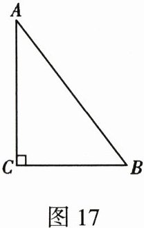 23. (11 分)如图 17,在 $\triangle ABC$ 中,$\angle C = 90^{\circ}$,$AB = 10\ cm$,$BC = 6\ cm$。若动点 $P$ 从点 $C$ 开始,按 $C\to A\to B\to C$ 的路径运动,且速度为每秒 $2\ cm$,设出发的时间为 $t\ s$。回答下列问题: