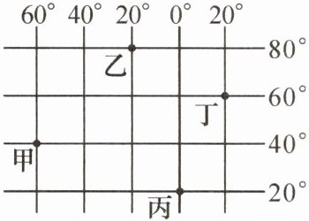 9.在绘制纬线时,甲、乙、丙、丁四颗棋子所在