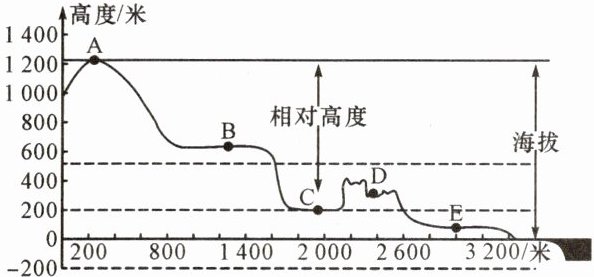 1. 读海拔与相对高度示意图,图中A、C两地的相对高度约为(