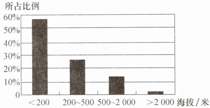 3. 海拔一般在500米以上,坡度较陡、沟谷较深的地形是(