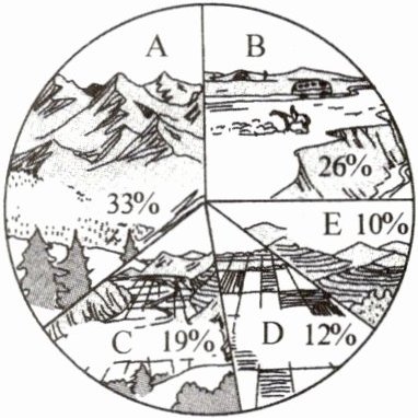 读我国各种地形占全国总面积的比重示意图,完成 1~3 题。