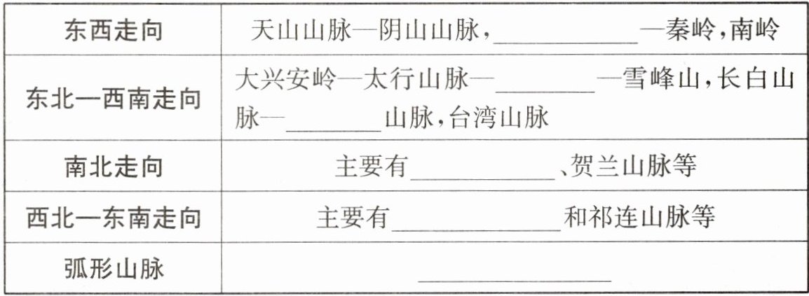 1.平原 丘陵 2.1/3 山区 2/3 3.昆仑山脉 巫山 武夷 横断山脉 阿尔泰山脉 喜马拉雅山脉 4.