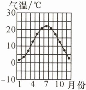 3. 读某地区气温年变化曲线图,图中所示地区的最高和最低月平均气温分别出现在(