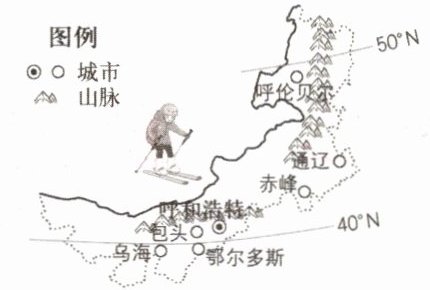 近年来,内蒙古自治区各地群众参与冰雪运动的热情日益高涨。下图示意内蒙古自治区部分城市位置。据此完成9~11题。
