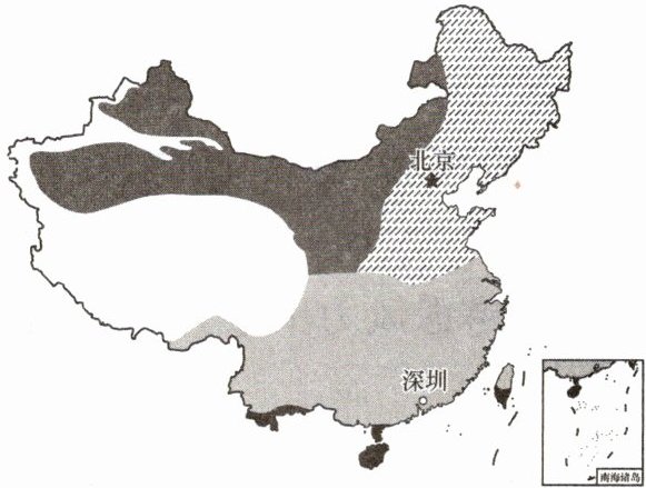新素材 2024 年 5 月 22 日,由中央广播电视总台、中央网信办、广东省人民政府共同主办的《2024 中国·AI 盛典》在广东深圳举行启动仪式,并于 6 月在总台央视综合频道、央视频、央视网等平台播出。读中国主要气候类型分布图,完成 4~5 题。