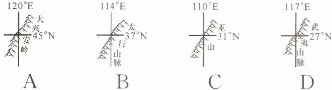 3. 下面是“我国四条重要的山脉位置示意图”,图中既是我国地势第二、三级阶梯分界线,又是我国季风区与非季风区分界线的山脉是(