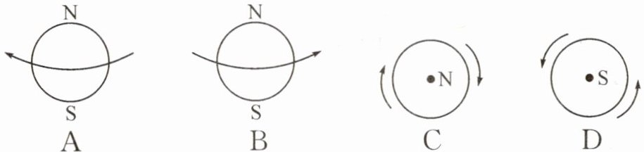 3. 下面四幅图中,能正确表示地球自转方向的是 (