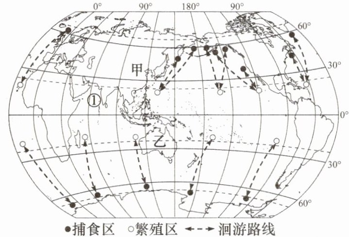 (方向)洄游去繁殖。(3)南、北半球大翅鲸的繁殖时间不一致,