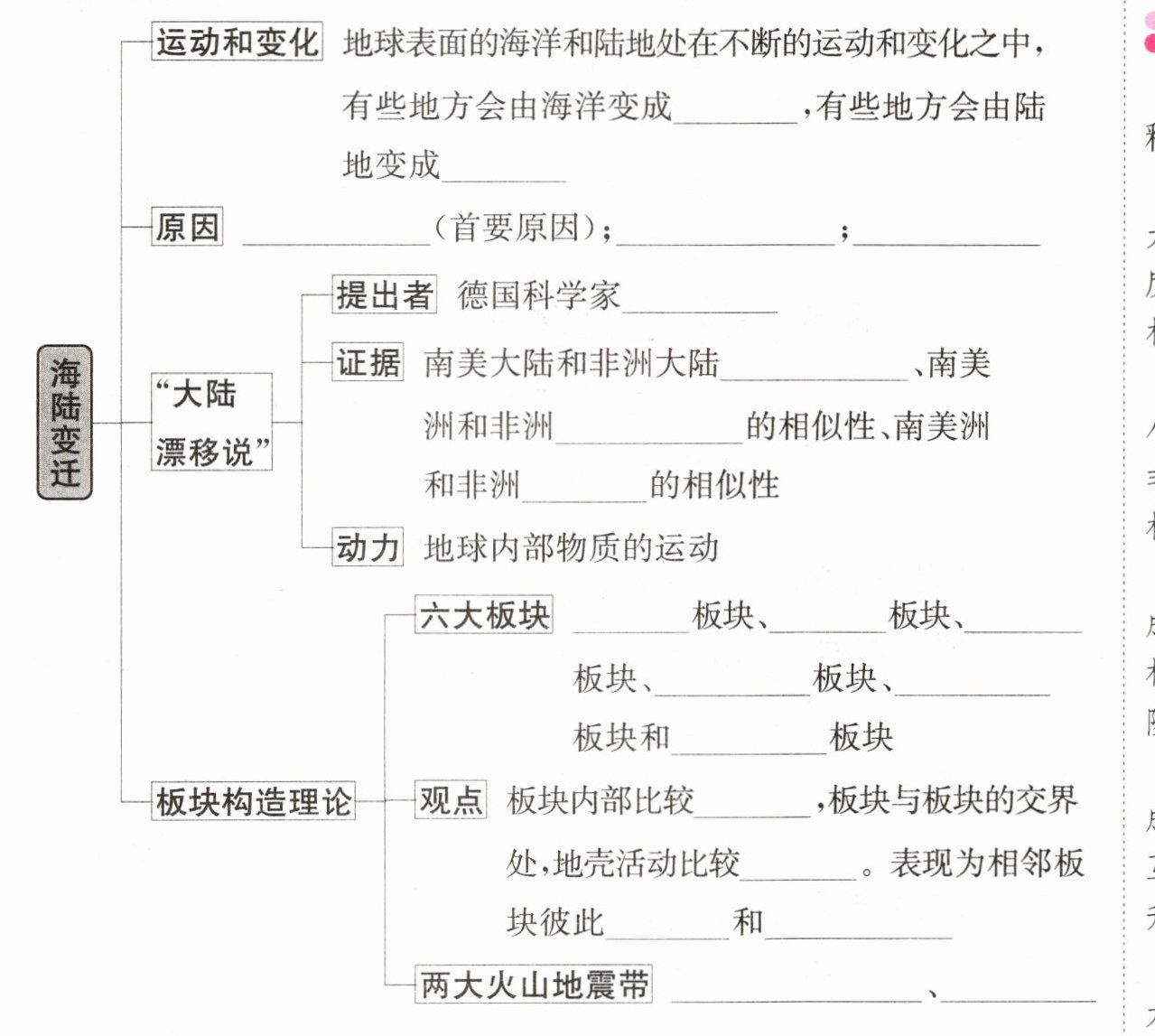 陆地 海洋 地壳运动 海平面升降 人类活动 魏格纳 轮廓拼合 古老地层 动物 亚欧 美洲 非洲 太平洋 印度洋 南极洲 稳定 频繁 分离 挤压碰撞 环太平洋地带 地中海—喜马拉雅地带