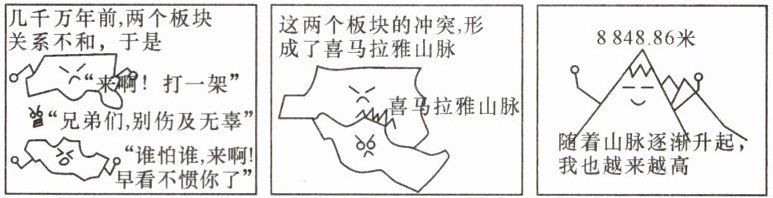 [趣味题]珠穆朗玛峰新高程为 8 848. 86 米。下图为某地理兴趣小组绘制的“珠峰的前世今生”漫画。据此完成 3~4 题。