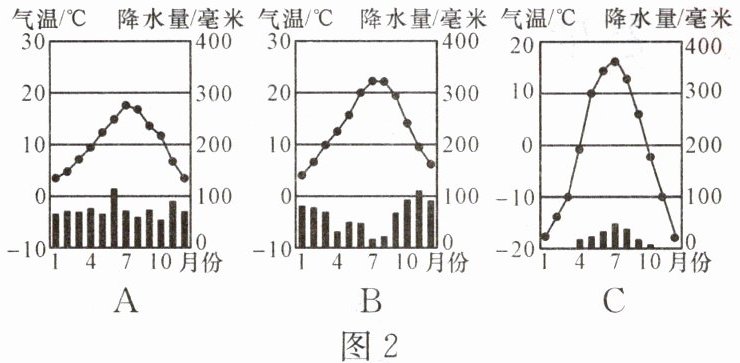 (1)图 1 中,①②③三地依次对应图 2 中的