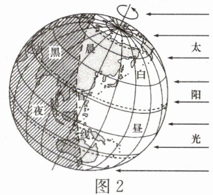 10. 当全球昼夜分布情况如图2所示时,太阳直射点位于图1中的(