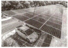 随着新能源汽车的广泛使用,汽车充电设施不断升级。光伏发电停车棚就是一种结合了太阳能光伏发电和停车场功能的设施。它在停车场上覆盖了光伏板,将太阳能转化为电能,经充电桩为停在车棚下的新能源汽车充电。如图为太原市某光伏发电停车棚。