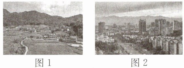 一般来说,城镇(图2)是在乡村(图1)的基础上发展而来的。据此完成1~3题。