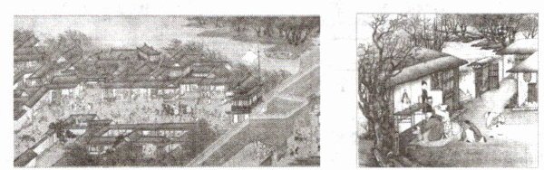 跨学科 语文 唐代著名诗人杜甫的《水槛遣心二首·其一》中有一句“城中十万户,此地两三家”,描写了城镇与乡村不同的场景。读古代城镇与乡村的景观图,完成4~6题。