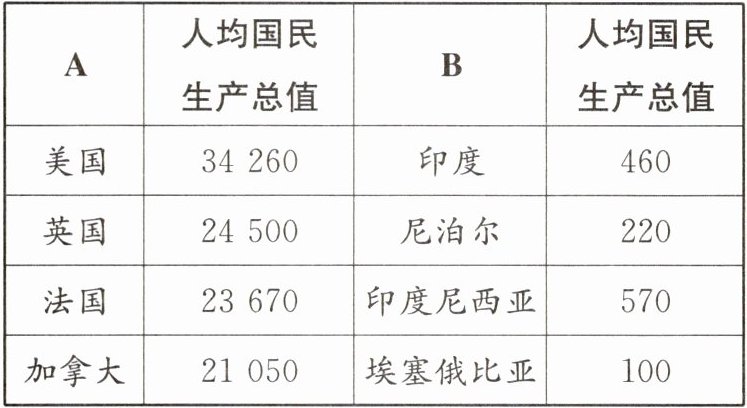 材料一 某年部分发达国家与发展中国家人均国民生产总值比较表(单位:美元)。