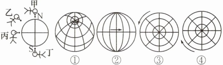 1.从甲、乙、丙、丁四处观察到的经纬网与图中①②③④对应正确的是(