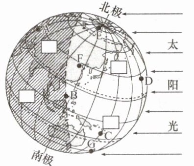 (2)图中A、B、C、D、E、F、G各点中,正值黑夜的是