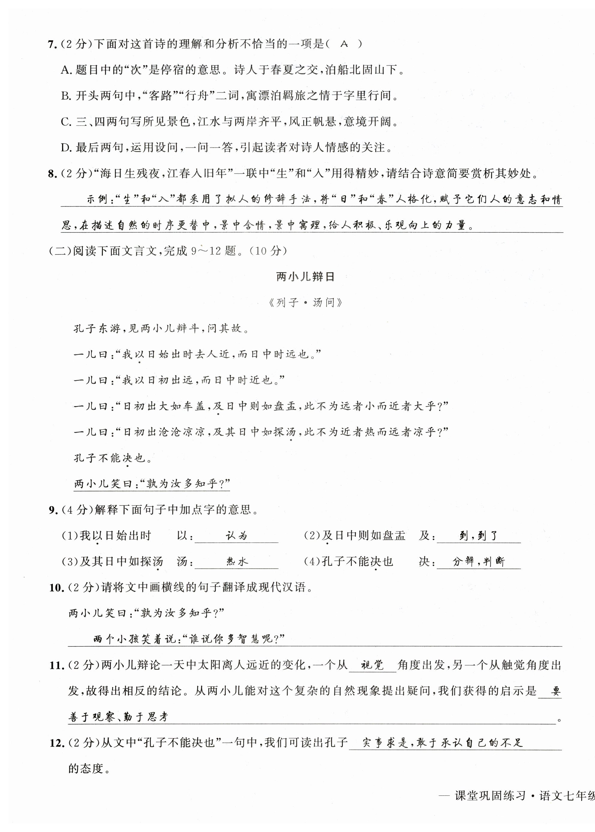 注:目前有些书本章节名称可能整理的还不是很完善,但都是按照顺序排列的,请同学们按照顺序仔细查找。练习册 2025年课堂巩固练习七年级语文上册人教版 答案主要是用来给同学们做完题方便对答案用的,请勿直接抄袭。