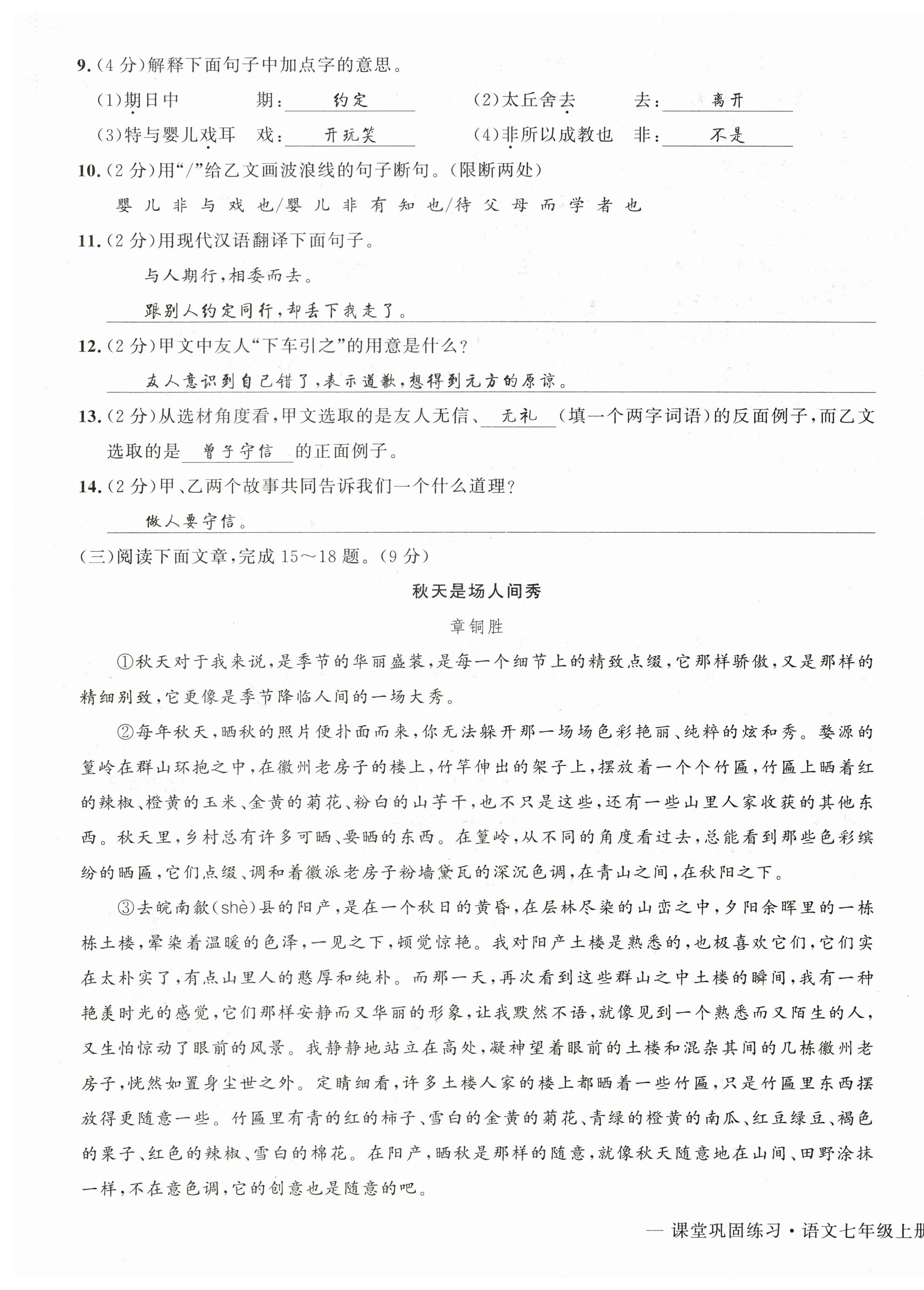 注:目前有些书本章节名称可能整理的还不是很完善,但都是按照顺序排列的,请同学们按照顺序仔细查找。练习册 2025年课堂巩固练习七年级语文上册人教版 答案主要是用来给同学们做完题方便对答案用的,请勿直接抄袭。