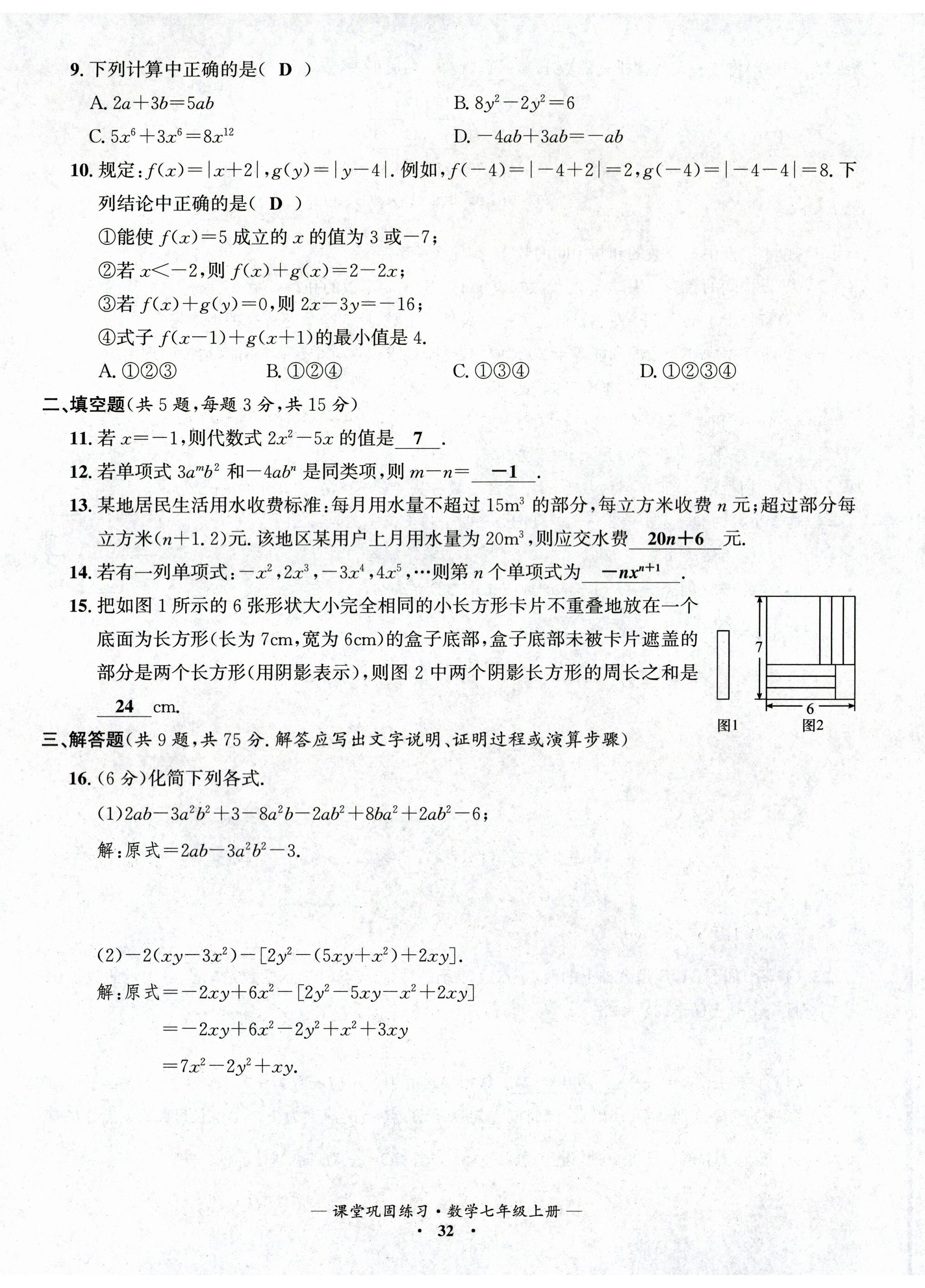 注:目前有些书本章节名称可能整理的还不是很完善,但都是按照顺序排列的,请同学们按照顺序仔细查找。练习册 2025年课堂巩固练习七年级数学上册人教版 答案主要是用来给同学们做完题方便对答案用的,请勿直接抄袭。