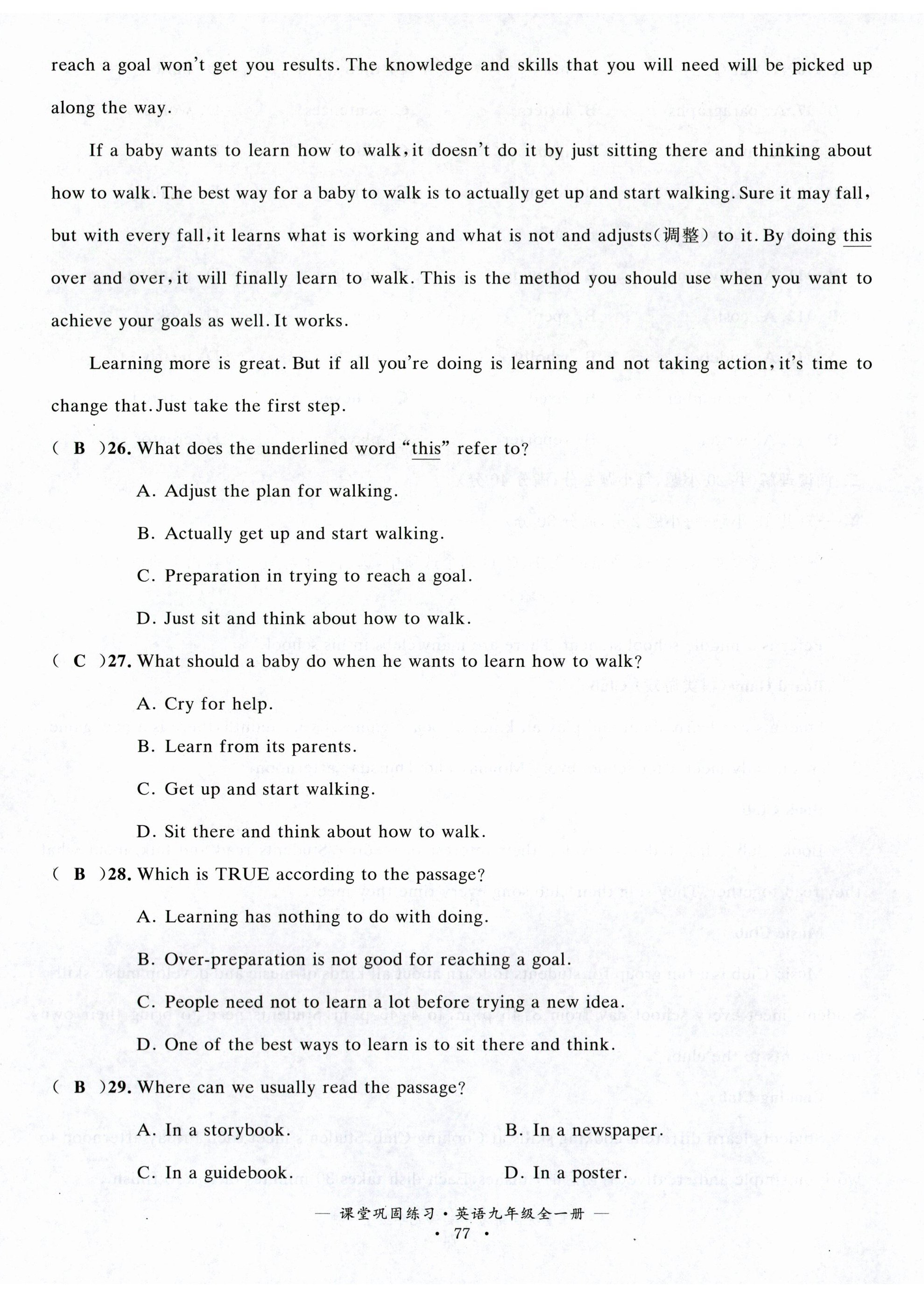 注:目前有些书本章节名称可能整理的还不是很完善,但都是按照顺序排列的,请同学们按照顺序仔细查找。练习册 2025年课堂巩固练习九年级英语全一册仁爱版 答案主要是用来给同学们做完题方便对答案用的,请勿直接抄袭。