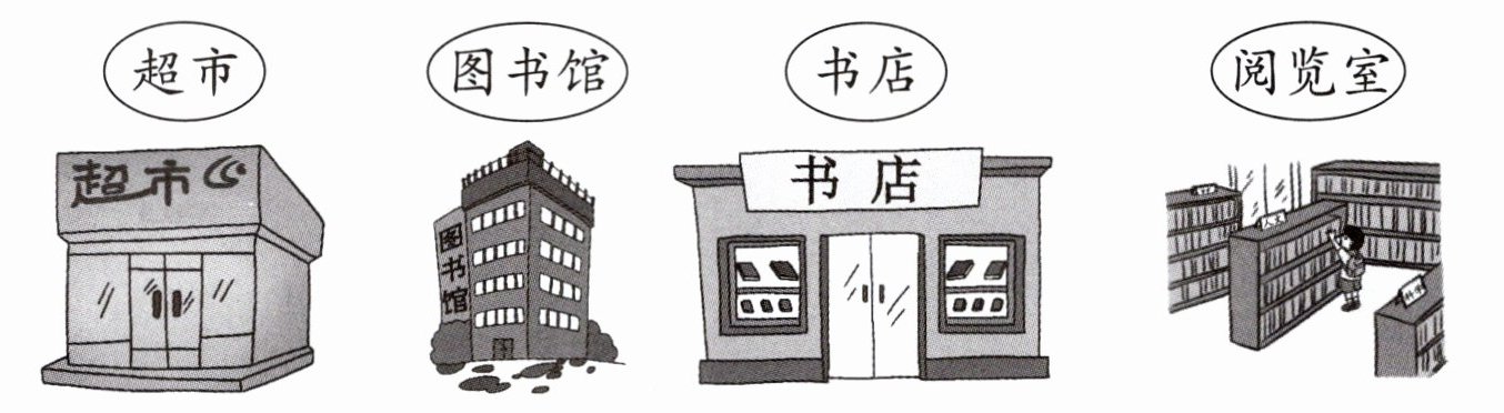 一、如果你想读书,可以去哪些地方呢?看图,在正确的下面画“√”,错误的下面画“×”。