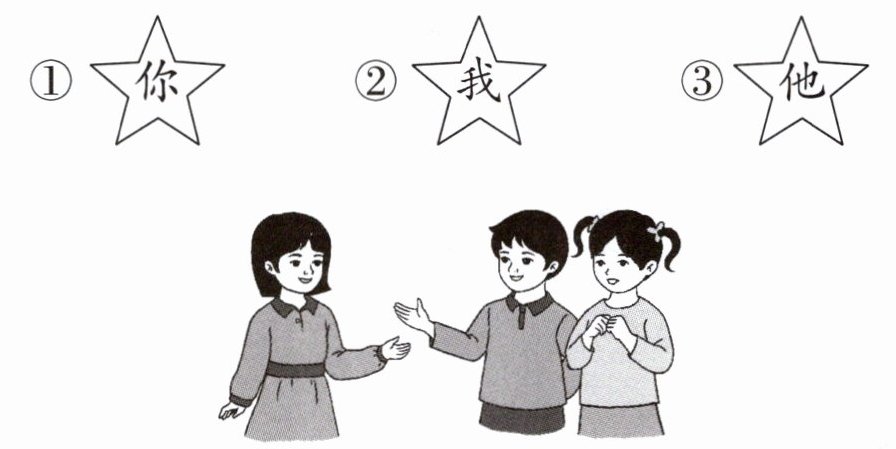 1. 儿歌第 1 句中的“你”指( ),“我”指( ),“他”指( )。(填序号)