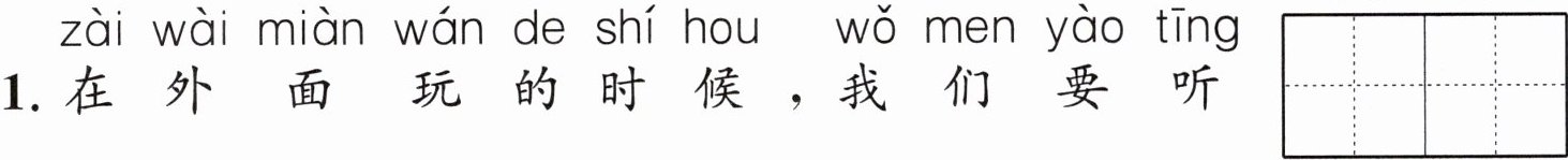 1. 在外面玩的时候,我们要听$\begin{array}{|c|c|}\hline dà & ren \\\hline\end{array}\\\hline $的话。