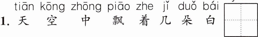1. 天空中飘着几朵白$\begin{array}{|c|c|} \hline & yún \\ \hline & \\ \hline \end{array}\\ \hline & \\ \hline $。