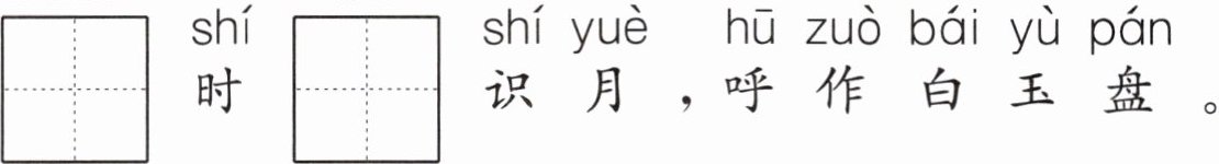 $\begin{array} { c } { xiǎo } \\ { \begin{array} { | c | c | } \hline { } & { } \\ \hline { } & { } \\ \hline \end{array}\hline { } & { } \\ \hline { } & { } \\ \hline } \end{array}\hline { } & { } \\ \hline { } & { } \\ \hline } 时 \begin{array} { c } { bù } \\ { \begin{array} { | c | c | } \hline { } & { } \\ \hline { } & { } \\ \hline \end{array}\hline { } & { } \\ \hline { } & { } \\ \hline } \end{array}\hline { } & { } \\ \hline { } & { } \\ \hline } 识月,呼作白玉盘。$