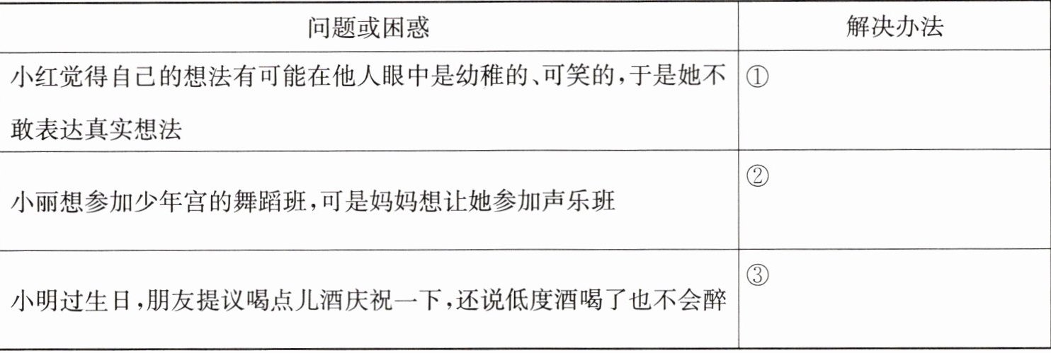 ①增强自信心,勇于表达自己的真实想法 ②心平气和地向妈妈表达自己的真实想法 ③坚决拒绝,并劝朋友也不要饮酒