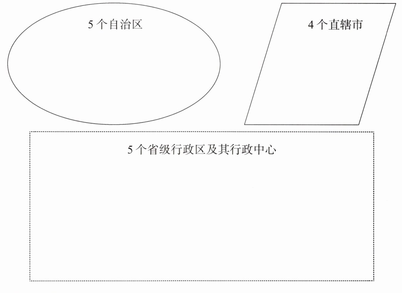 2. 对照教材中呈现的中国省级行政区域图,找出 5 个自治区、4 个直辖市,另外再找出 5 个省级行政区及其行政中心。