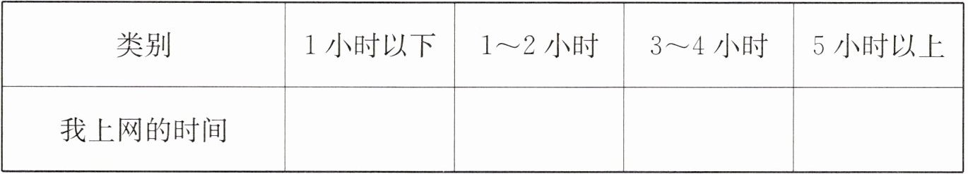 1. 根据平时上网情况在对应时间栏打“√”(示例:若平时上网1.5小时,则在“1~2小时”栏打“√” ,以下以1.5小时为例填写示例表格)