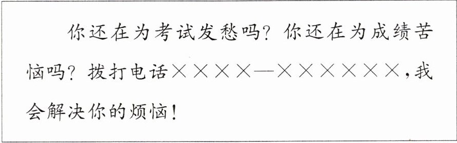 你还在为考试发愁吗?你还在为成绩苦恼吗?拨打电话××××—××××××,我会解决你的烦恼!
