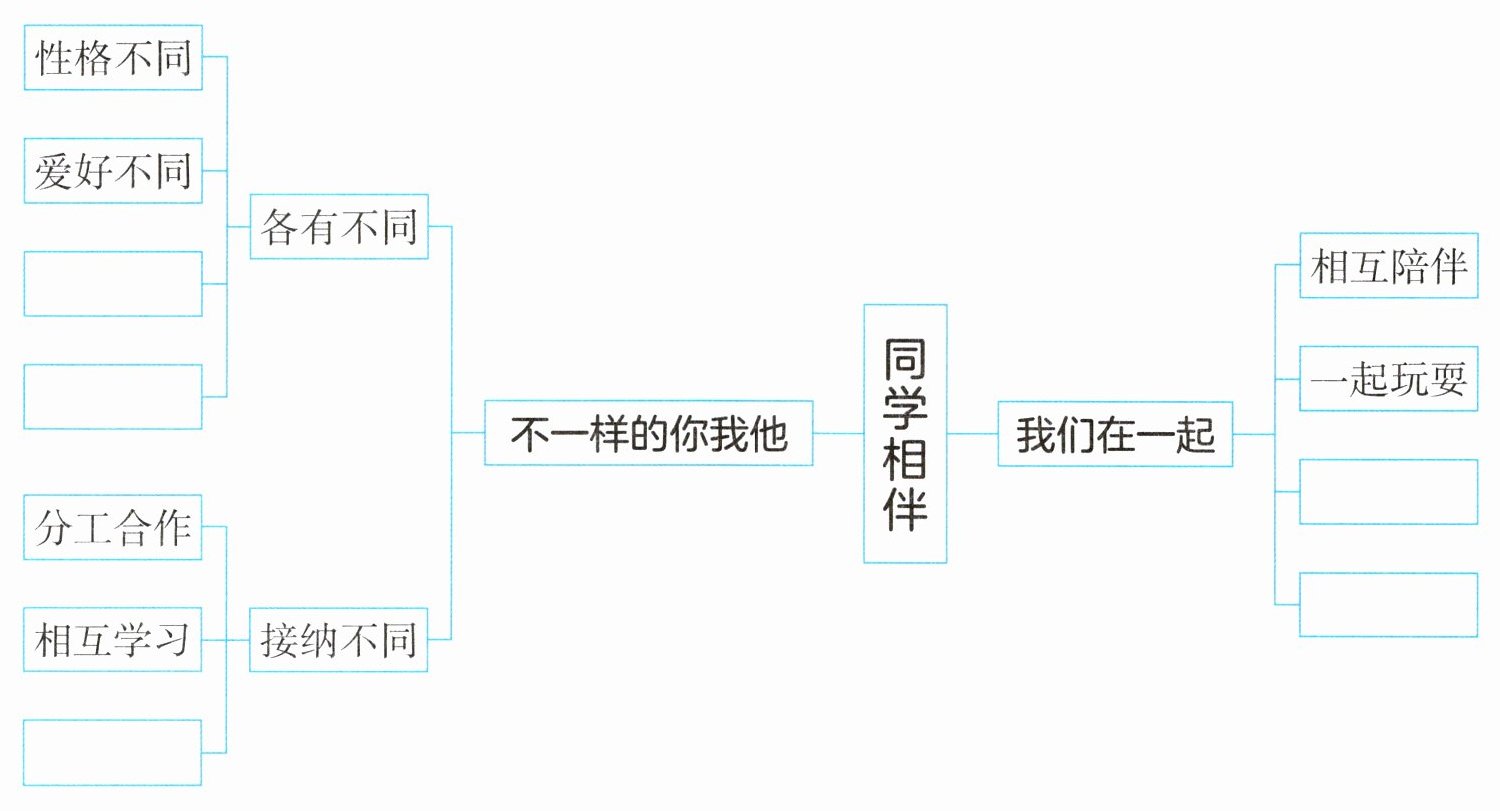 2. 同学之间有很多相同点,又各有不同。请你分享你和同学的相同点和不同点。