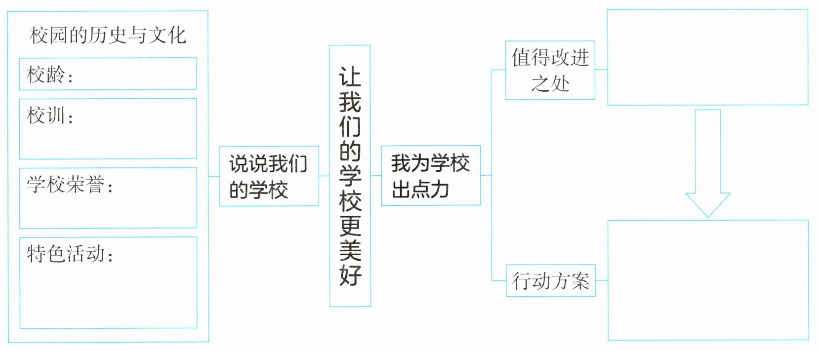 (校龄:根据实际填写,如“50年”;校训:根据实际填写,如“团结勤奋,求实创新”;学校荣誉:根据实际填写,如“市文明校园”;特色活动:根据实际填写,如“科技节”;值得改进之处:根据实际填写,如“校园绿化不足”;行动方案:根据实际填写,如“成立绿植养护小组,定期浇水施肥”)