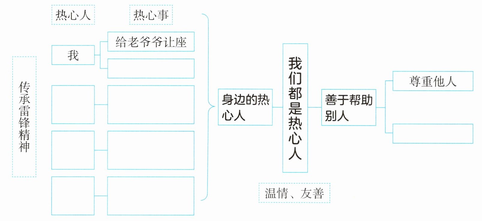1. 回想一下,在生活中你得到过哪些热心人的帮助,你又主动帮助过哪些人?