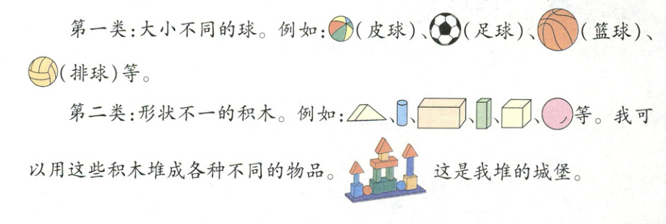 例 3 (教材第 2 页)你在幼儿园里玩过哪些形状的玩具?