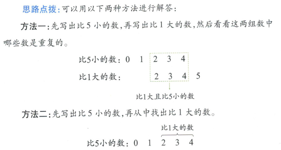 例 1 一个数比 1 大,且比 5 小,这个数可能是多少?