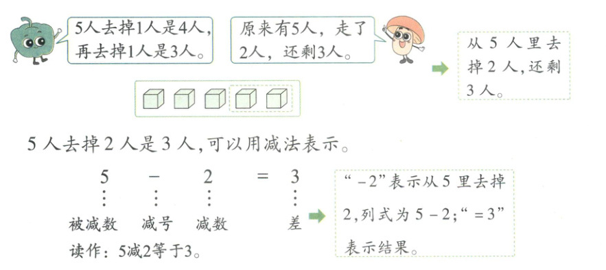 规范解答: 5 - 2 = 3 还剩 3 人。