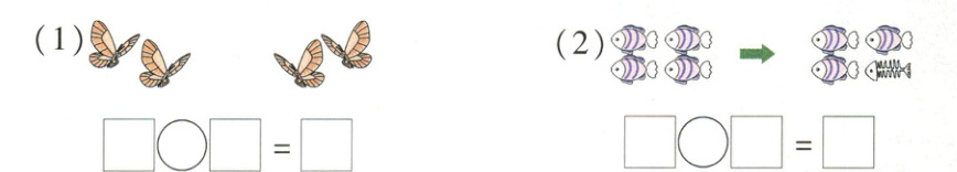 解:左边有$2$只蝴蝶,右边有$2$只蝴蝶,求一共有多少只蝴蝶,用加法计算,算式为$2 + 2=4$。