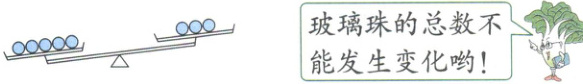 思路点拨:天平左边有 5 颗玻璃珠,右边有 3 颗玻璃珠,左边比右边多 2 颗玻璃珠。要使天平平衡,就要使天平两边的玻璃珠一样多,所以可以从左边移 1 颗玻璃珠到右边。