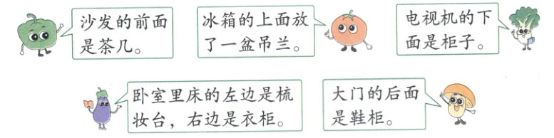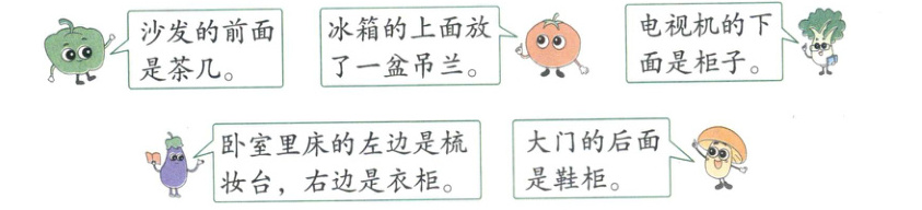 例4 (教材第34页)用上、下、前、后、左、右向同学介绍自己家物品的摆放位置。
