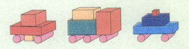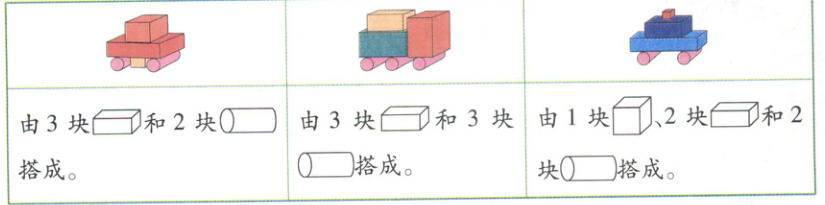 例 1 (教材第 5 页)下面的车是用哪些形状的积木搭成的? 看一看,搭一搭。